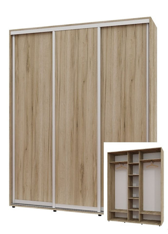 ТОВАР ПІД ЗАМОВЛЕННЯ. ТЕРМІН ВИГОТОВЛЕННЯ 2 ТИЖНІ • Корпус і фасад виробу виготовлений із ламінованого ДСП завтовшки 16 мм. • Крайка зовнішніх деталей 2 мм, полиці, а також ящики 0.5 мм. Алюмінієвий профіль. • Шафи спроєктовані так, щоб забезпечити міцну, безпечну та стійку конструкцію. Компоненти розсувної системи та фурнітура проходять перевірку на міцність і довговічність. • Завдяки універсальній заводській присадці під час встановлення ви можете змінити розташування внутрішнього наповнення — змінити його дзеркально. • Шафа встановлюється на регульовані ніжки, які дають змогу виставити шафу рівно. • У комплекті передбачені стоєві, дах, дно, внутрішнє наповнення (полиці, труби), напрямні, двері та комплект фурнітури. • Шафа відвантажується в розібраному вигляді заводській упаковці.