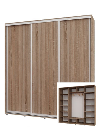 ТОВАР ПІД ЗАМОВЛЕННЯ. ТЕРМІН ВИГОТОВЛЕННЯ 2 ТИЖНІ • Корпус і фасад виробу виготовлений із ламінованого ДСП завтовшки 16 мм. • Крайка зовнішніх деталей 2 мм, полиці, а також ящики 0.5 мм. Алюмінієвий профіль. • Шафи спроєктовані так, щоб забезпечити міцну, безпечну та стійку конструкцію. Компоненти розсувної системи та фурнітура проходять перевірку на міцність і довговічність. • Завдяки універсальній заводській присадці під час встановлення ви можете змінити розташування внутрішнього наповнення — змінити його дзеркально. • Шафа встановлюється на регульовані ніжки, які дають змогу виставити шафу рівно. • У комплекті передбачені стоєві, дах, дно, внутрішнє наповнення (полиці, труби), напрямні, двері та комплект фурнітури. • Шафа відвантажується в розібраному вигляді заводській упаковці.