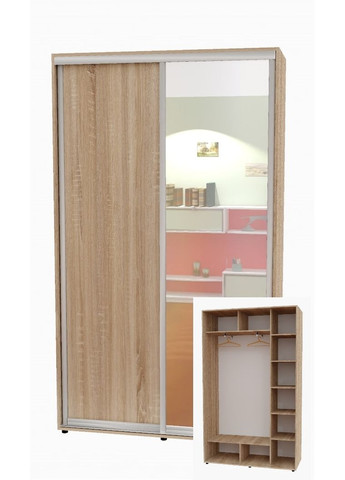 ТОВАР ПІД ЗАМОВЛЕННЯ. ТЕРМІН ВИГОТОВЛЕННЯ 2 ТИЖНІ • Корпус і фасад виробу виготовлений із ламінованого ДСП завтовшки 16 мм. • Крайка зовнішніх деталей 2 мм, полиці, а також ящики 0.5 мм. Алюмінієвий профіль. • Шафи спроєктовані так, щоб забезпечити міцну, безпечну та стійку конструкцію. Компоненти розсувної системи та фурнітура проходять перевірку на міцність і довговічність. • Завдяки універсальній заводській присадці під час встановлення ви можете змінити розташування внутрішнього наповнення — змінити його дзеркально. • Шафа встановлюється на регульовані ніжки, які дають змогу виставити шафу рівно. • У комплекті передбачені стоєві, дах, дно, внутрішнє наповнення (полиці, труби), напрямні, двері та комплект фурнітури. • Шафа відвантажується в розібраному вигляді заводській упаковці.