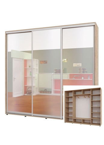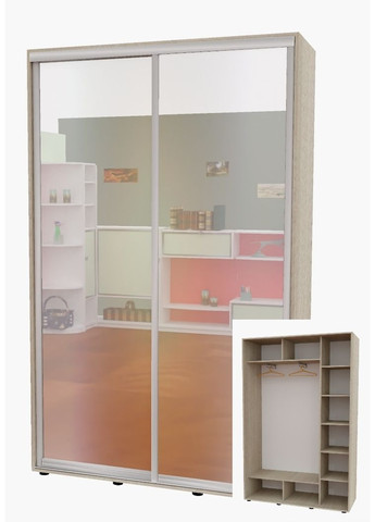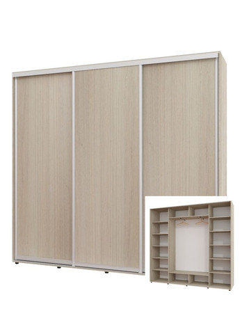 ТОВАР ПІД ЗАМОВЛЕННЯ. ТЕРМІН ВИГОТОВЛЕННЯ 2 ТИЖНІ • Корпус і фасад виробу виготовлений із ламінованого ДСП завтовшки 16 мм. • Крайка зовнішніх деталей 2 мм, полиці, а також ящики 0.5 мм. Алюмінієвий профіль. • Шафи спроєктовані так, щоб забезпечити міцну, безпечну та стійку конструкцію. Компоненти розсувної системи та фурнітура проходять перевірку на міцність і довговічність. • Завдяки універсальній заводській присадці під час встановлення ви можете змінити розташування внутрішнього наповнення — змінити його дзеркально. • Шафа встановлюється на регульовані ніжки, які дають змогу виставити шафу рівно. • У комплекті передбачені стоєві, дах, дно, внутрішнє наповнення (полиці, труби), напрямні, двері та комплект фурнітури. • Шафа відвантажується в розібраному вигляді заводській упаковці.