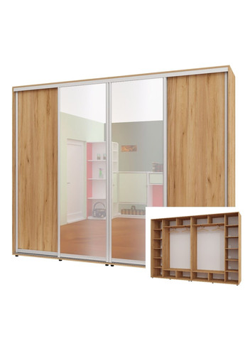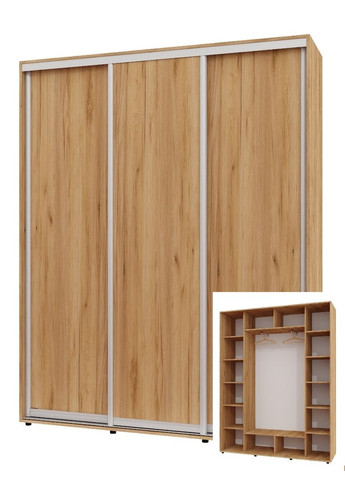 ТОВАР ПІД ЗАМОВЛЕННЯ. ТЕРМІН ВИГОТОВЛЕННЯ 2 ТИЖНІ • Корпус і фасад виробу виготовлений із ламінованого ДСП завтовшки 16 мм. • Крайка зовнішніх деталей 2 мм, полиці, а також ящики 0.5 мм. Алюмінієвий профіль. • Шафи спроєктовані так, щоб забезпечити міцну, безпечну та стійку конструкцію. Компоненти розсувної системи та фурнітура проходять перевірку на міцність і довговічність. • Завдяки універсальній заводській присадці під час встановлення ви можете змінити розташування внутрішнього наповнення — змінити його дзеркально. • Шафа встановлюється на регульовані ніжки, які дають змогу виставити шафу рівно. • У комплекті передбачені стоєві, дах, дно, внутрішнє наповнення (полиці, труби), напрямні, двері та комплект фурнітури. • Шафа відвантажується в розібраному вигляді заводській упаковці.