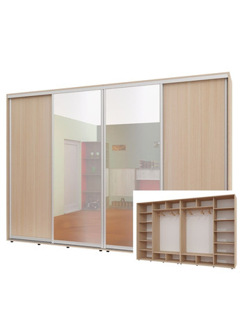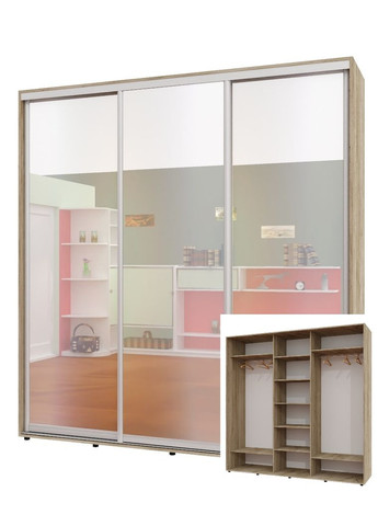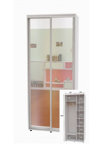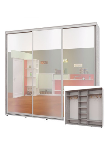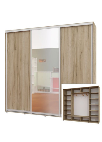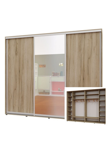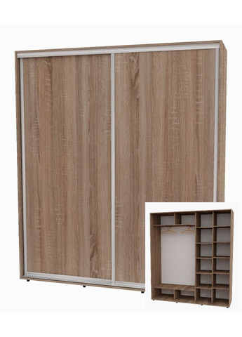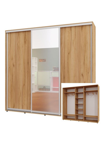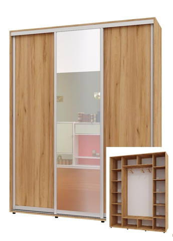 ТОВАР ПІД ЗАМОВЛЕННЯ. ТЕРМІН ВИГОТОВЛЕННЯ 2 ТИЖНІ • Корпус і фасад виробу виготовлений із ламінованого ДСП завтовшки 16 мм. • Крайка зовнішніх деталей 2 мм, полиці, а також ящики 0.5 мм. Алюмінієвий профіль. • Шафи спроєктовані так, щоб забезпечити міцну, безпечну та стійку конструкцію. Компоненти розсувної системи та фурнітура проходять перевірку на міцність і довговічність. • Завдяки універсальній заводській присадці під час встановлення ви можете змінити розташування внутрішнього наповнення — змінити його дзеркально. • Шафа встановлюється на регульовані ніжки, які дають змогу виставити шафу рівно. • У комплекті передбачені стоєві, дах, дно, внутрішнє наповнення (полиці, труби), напрямні, двері та комплект фурнітури. • Шафа відвантажується в розібраному вигляді заводській упаковці.
