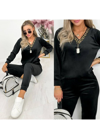 Стильний костюм-двійка гарної якості. Передня частина штанів виконана з якісної екошкіри, задня з двонитки гарної якості. Кофта виконана з двонитки, яка не покашлатиться і прослужить не один рік. Спереду якісний накат, рукав 7/8, комір-стійка.