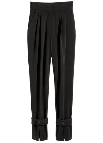 Укорочені штани із тканини зі стрілками, талія стандартної висоти, застібка на гачок та на блискавку. Скошені бічні кишені, несправжні прорізні кишені ззаду. Можливе пошкодження бірки. Для розміру 34: ПОТ-34 см, ПОБ-46 см, довжина-93 см.