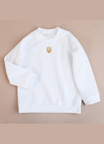 Дитячий патріотичний лонгслів з тризубом на довгий рукав з патентом. Матеріал двонитка. Виробник ТМ Ladan. Емблема є машинною вишивкою, не принт.