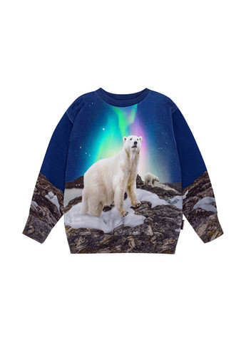 Molo – "Найкращий міжнародний дитячий модний бренд" за версією журналу "Baby&MeStyle" у 2014 р., переможець премії "Earnie Award" від Earnshaw's у номінації "Найкращий бренд одягу для хлопчиків" у 2019 р., володар премії "Best in Test" у 2018 р. та тричі "Кращий модний дитячий бренд Данії" за версією Copenhagen Fashion Week. Світшот Molo "Mattis Polar Night". Особливості: матеріал – 100% organic cotton*; сертифікований GOTS** – виготовлений із сертифікованих органічних матеріалів; декорований принтом із зображенням білих ведмедів на тлі полярного сяйва; круглий виріз горловини; на рукавах та внизу еластичні ребристі манжети.