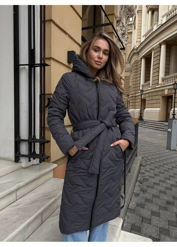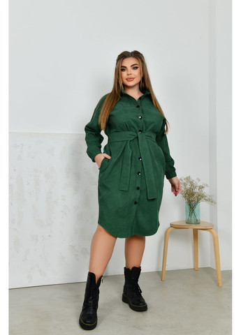 Рукави довгі, завершені акуратними манжетами, що додає образу делікатності та стильності. У комплект входить пояс із основної тканини, який можна зав’язати різними способами, регулюючи акцент на талії.