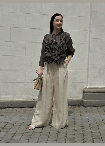брюки на гумці. На розмір 38 довжина по внутрішньому шву: 70 см, ширина по низу вироби (напівобхват): 13 см