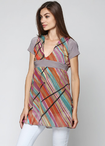 блуза з коротким рукавом, на ґудзиках, розкльошена від рівня грудей