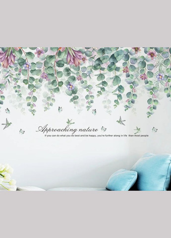 Наклейка на стіну Зелені з квітами рослини що звисають (лист 60 х 90 см) 55см*119см