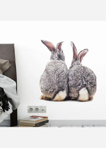 вінілові наклейки на стіну, двері, вікна, вітрини "два зайця, кролика вигляд ззаду" Приблизний розмір після наклеювання 27см*30см, Наклейки компактно наклеєні на аркуші розміром 30см*32см