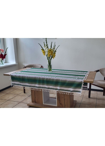 Розмір скатертини(мм) - 1450*1450(розмір без торок); Торки - бавовняне мереживо, колір білий, довжина торок 3см(30мм); Колір тканини - білий; Колір орнаменту - зелений, лимонно-жовтий, чорний; Склад тканини - Поліестер 44% Акрил 35% Бавовна 21%; Вид переплетення - комбіноване; Тип малюнка - етнорнамент, машинна вишивка; Також на сайті є Інші моделі та розміри етноскатертин
