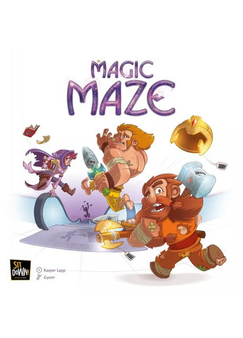 ОПИС НАСТІЛЬНОЇ ГРИ MAGIC MAZE Зібрались Ельф, Гном, Маг і Варвар сходити в печеру розважитися: монстрів повбивати, драконів за хвіст потягати та іншу нечисть винищити. Але для початку, потрібно озброїтися! А де, по-вашому, беруть зброю фентезійні герої?! Правильно, в спеціальному магічному маркеті Magic Maze. Проте грошей у наших героїв не виявилося, і вирішили вони піти на пограбування… Перед Вами кооперативна настільна гра в режимі реального часу. Пограбування магазину потрібно провести тихо і швидко, поки не закінчиться час в пісковому годиннику. В іншому випадку, вас зловить охорона. Буде непросто — лабіринти Магічного Маркету підступні!ПЕРЕД ГРОЮ Перемішайте тайли лабіринту і складіть їх у стос долілиць. У центрі столу розташуйте стартовий тайл магазину, а на нього покладіть 4 різнокольорові фішки героїв. План магазину і його лабіринти розкриватимуться гравцям за ступенем його дослідження і приставлення нових тайлів. Увага! У цій грі Ви граєте не за конкретного героя, а за всіх персонажів одразу. Ваша мета довести фішки героїв до артефакту (зброї) відповідного кольору, а після цього дружньо втекти з магазину. На все про все 3 хвилини, які невблаганно відраховує пісковий годинник. Втім, час можна буде збільшити, але про це розповімо трохи нижче. Гравці отримують на руки по одному жетону дії, на якому зазначено, яку саме дію (або дві дії) гравець може виконувати будь-якою з фішок героїв. Одному з учасників буде доступною дія переміщення фішок на північ, іншому — на захід, третій буде переміщати героя ескалатором або, наприклад, досліджувати (приставляти нові тайли) до лабіринту супермаркету. Головне, що кожен відповідає тільки за свою дію.БО ТИША ПОВИННА БУТИ ПІД ЧАС ПОГРАБУВАННЯ Щойно пісковий годинник буде перевернуто, гра, а точніше пограбування, почалося! Головне правило гри: учасникам заборонено спілкуватися! Ані жестами, ані звуками, тим більш словами. Ніяк! Єдине, що дозволено — це пильно дивитися на іншого гравця, або покласти перед ним спеціальну фішку «Зроби що-небудь!».ПЕРЕМІЩЕННЯ У грі немає ходів! Усі учасники одночасно керують фішками героїв, переміщаючи їх Магомаркетом. Фішки ходять по клітинкам. Причому, якщо гравцеві доступна дія «переміщення на північ» він може пересувати фішку на будь-яку кількість клітинок на північ, поки не впреться в стіну. Для повернення або повороту, цю фішку повинен підхопити учасник з відповідною дією. На деяких тайлах магазину, вам зустрінуться телепорти. Це зручна штука для переміщення фішки на велику відстань: в один портал зайшов, з іншого вийшов. Дією «Використовувати портал» також керує один з учасників гри (і лише він). На перший погляд — нічого складного! Але ми нагадаємо, що спілкуватися і домовлятися про майбутні дії заборонено, а діяти злагоджено і колективно в повній тиші — досить складно. Адже мета у гравців одна, але в кожного в голові свій план її досягнення. Ось тут і починаються пильні, злобні погляди одне на одного, а також розміщення перед гравцем фішки «Зроби що-небудь!»…, а він не зрозуміє, що… (усмішка).ДОСЛІДЖЕННЯ Дією «Дослідження» також керує один з учасників гри. Ця дія дозволяє приставляти нові тайли до наявного лабіринту магазину. Для того, щоб вона була доступною, фішка відповідного кольору мусить зайти на клітинку із зображенням лупи (дослідження). У цьому випадку, гр