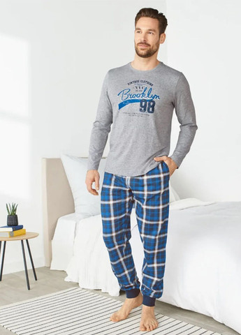 Якісна комфортна піжама для чоловіків, чоловічий костюм для дому та відпочинку з штанами джогерами в клітинку, LIVERGY, Німеччина.