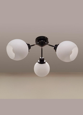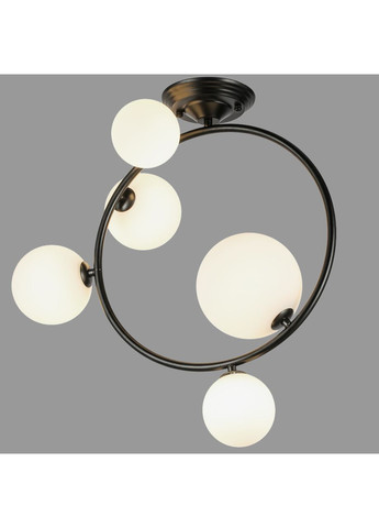 Матеріал - метал, скло Колір основи - чорний Колір плафона - білий Тип цоколя - G9 Висота - 55см Діаметр - 37см Діаметр плафонів - 2шт 10см, 2шт 12см 1шт 15см Діаметр стельової основи - 14см