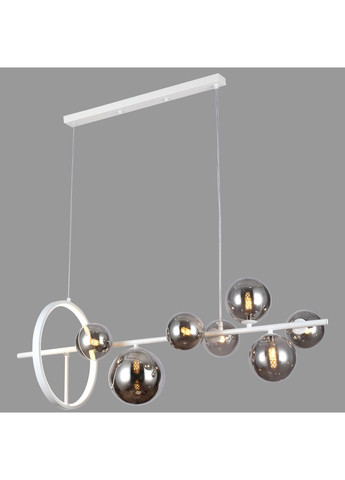 Матеріал - метал, скло Колір металу - білий Колір скла - графітовий Джерел світла - 7 ламп + LED кільце 12W 4000K (нейтральне біле світло) Цоколь патрона - G9 Розмір плафонів - 4шт 10см, 2шт 12см, 1шт 15см Розмір люстри - 90х30см (д/ш) Діаметр кола - 30см Висота люстри регулюється від 30 до 125см