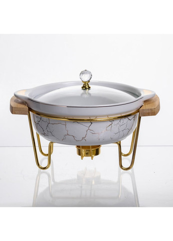 Настільна мармітниця кругла на металевій підставці стане ідеальним вибором для будь-якого банкету або святкового заходу. Металева підставка забезпечує надійну підтримку марміту та зручність під час подавання страв. Марміт використовується для підтримки температури страв, зберігаючи їхній аромат. Основні характеристики круглого марміту: Об'єм: 800 мл; Розмір: 25х20х17 см; Матеріал марміта: порцеляна; Матеріал кришки: скло; Матеріал: підставки метал + дерево. Порцеляновий марміт є не тільки практичним, але й естетично привабливим вибором для будь-якого столу, забезпечуючи зручність і стиль під час сервірування страв. Купити марміт порцеляновий можна з доставкою по всій Україні.