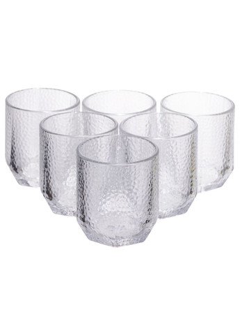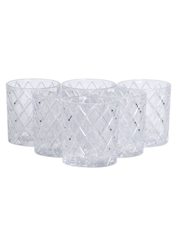 Набір склянок призначений для подачі віскі, бурбона, бренді або інших міцних напоїв. Виготовлені зі скла, що не містить свинцю, склянки відповідають стандартам безпеки для харчових виробів і не змінюють смакових властивостей напою. Завдяки своїй вазі та товстим стінкам вони стійкі до механічних пошкоджень і приємно лежать у руці. Кожна склянка має декоративну ромбоподібну поверхню, що не лише додає естетичної привабливості, а й створює цікаву гру світла, особливо під час наповнення кольоровими напоями. Такий дизайн також сприяє зручному утриманню посуду та запобігає вислизанню з рук. Основні характеристики Набір: 6 штук: Об'єм: 320 мл; Висота: 9 см; Верхній діаметр: 8 см; Нижній діаметр: 7.5 см; Матеріал: скло. Набір підходить як для щоденного використання, так і для святкових подій або подарунків. Склянки можна мити вручну або в посудомийній машині без ризику пошкодити візерунок або форму.