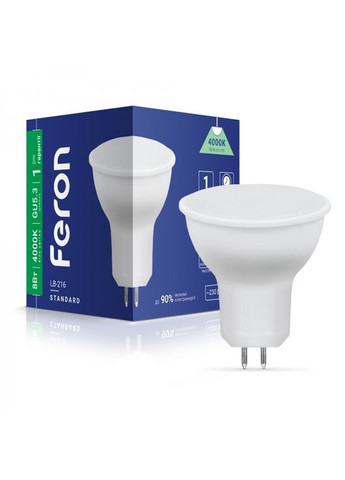 Характеристики Бренд Feron Вид лампи Світлодіодна Гарантія 12 місяців Кількість циклів вмикання до передчасного виходу лампи з ладу 15000 Коефіцієнт потужності ≥0,5 Колір колби Матовий Колірна температура Кольоропередача Ra≥80 Кут випромінювання 120° Матеріал корпусу Алюміній+Пластик Напруга, В 230 Потужність, Вт 8 Розмір Ø50х58 мм Світловий потік, лм 700 Свічення Нейтральне Сумісність з димерами ні Термін служби та коефіцієнт збереження світлової віддачі 30000 годин до спаду світлового потоку L70 B50 Формфактор Функція діммування ні Цоколь Час запуску Миттєве повне світло