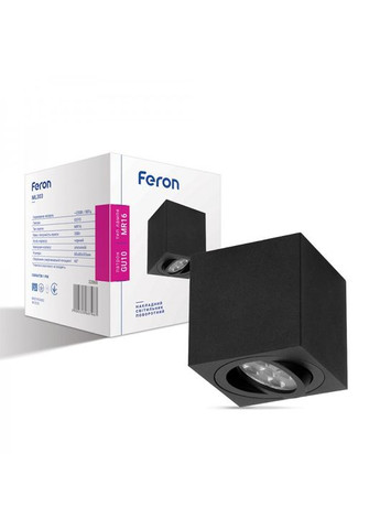 Характеристики Бренд Feron Потужність, Вт 6 Світловий потік 450 лм Тип світильника Накладний Колірна температура 4000К Колір корпусу Чорний Матеріал корпусу Алюміній Гарантія 12 місяців Кількість в упаковці 20 Колір свічення Нейтральний Кольоропередача Ra≥80 Напруга, В 230 Розмір 135*115*100 мм Ступінь захисту IP54 Термін служби 30000 годин Тип джерела світла LED