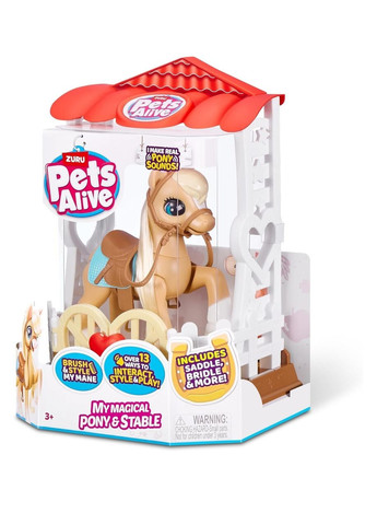 13 способів гри:Розчісуйте й укладайте мою гриву,годуйте мене яблуками та готуйте мене до виходу з вуздечкою та сідлом.Існує понад 13 способів взаємодії,укладання та гри. Справжні звуки поні: Твоя чарівна поні хоче грати! Погодуй її яблуками та послухай як вона хрумтить. Укладаю волосся: Розчісуй та укладай гриву за допомогою гребінця. Стайня для поні: до набору "My Magical Pony" входить стайня для поні-ідеальний дім для вашого поні.