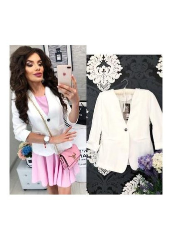 Жіночий жакет. Цей елегантний жакет стане чудовим доповненням до вашого гардеробу. Модель злегка приталена, з рукавами 3/4 та акуратним V-подібним вирізом, що підкреслює жіночність силуету. Застібається на одну гудзик посередині, що додає образу витонченості. Жакет добре тримає форму завдяки якісній тканині та приємний до тіла. Ідеально пасує як для офісних луків, так і для повсякденних або святкових образів. Поєднується з брюками, джинсами або спідницями. Матеріал: котон з еластаном Колір: м’ятний, бірюза, беж, кава, шоколад, гірчиця, електрик, червоний, корал, чорний, молоко,синій, темно синій, зелена бірюза. Розміри: 42, 44, 46, 48 Довжина: до стегна Особливості: рукав 3/4, один гудзик, приталений крій