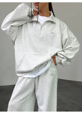 Жіночий затишний костюм з м’якої плюшевої тканини. Верх — світшот вільного крою з коміром-стійкою на блискавці, опущеною лінією плеча та манжетами на резинці. Низ — штани з високою посадкою на еластичному поясі та знизу з манжетами. Тканина приємна до тіла, добре тримає форму та забезпечує комфорт у повсякденному носінні. Ідеальний варіант для прогулянок, дому або подорожей у прохолодну погоду.
