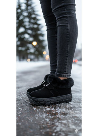 Жіночі замшеві чорні демісезонні ботильйони - елегантне взуття, що поєднує стиль і комфорт. Верх виконаний зі штучної замші, яка надає виробу м'якості та розкішного вигляду. Стійкий підбор 4 см з оригінальним дизайном додає взуття вишуканості.
