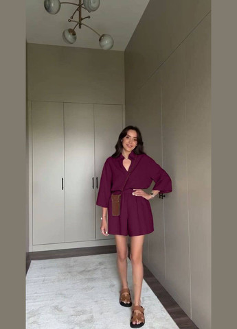 Стильний та надзвичайно комфортний комплект, що стане вашим фаворитом цього літа! Він складається з вільної сорочки та оригінальної спідниці-шортів, виконаних з високоякісної тканини льон-бавовна.