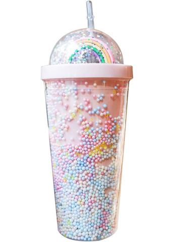 Усередині між стінками склянки Glitter Rainbow знаходяться різнокольорові кульки, а в кришці - веселка з блискітками зірочками. Склянка Веселка стійка до високих температур, зроблена з харчового пластику, довговічна. Подвійні стінки цього стакану дозволять зберегти температуру вашого напою довше. У комплекті зі склянкою є кришка і трубочка, завдяки чому її можна легко взяти з собою в дорогу або на прогулянку. Об'єм: 550 мл Розмір склянки: 10,5 х 19,5 см Вага: 150 г