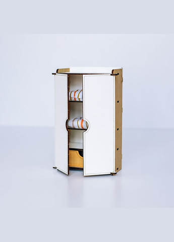 Інтерактивна шафа з дверцятами, що відкриваються, і висувною скринькою для Барбі. Має три просторі полиці для лялькових речей. Так само предмет меблів підійде для гри та іншими ляльками, як Monster High, Enchantimals та ін. Параметри шафи для ляльок: - Довжина – 12 см. - Висота – 23 см. - Ширина – 7 см. Колір: білий + натуральна деревина. Матеріал: ХДФ (пресована деревина). Для виробництва використовуються лише екологічно чисті матеріали. Вирушає у розібраному вигляді.