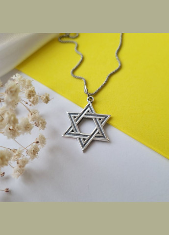 Підвіска оберег Зірка Давида Срібло 925 проби Чорнене срібло вага 3.50г Довжина з вушком 35 мм Діаметр кола 25 мм Виробництво Україна На всіх ювелірних виробах стоїть проба палати України, що підтверджує матеріал виробу — і законність їх реалізації на території України та іменник виробника, який гарантує відповідність ювелірних виробів вимогам ГСТУ 3527-97 "Виробу ювелірні з дорогоцінних матеріалів