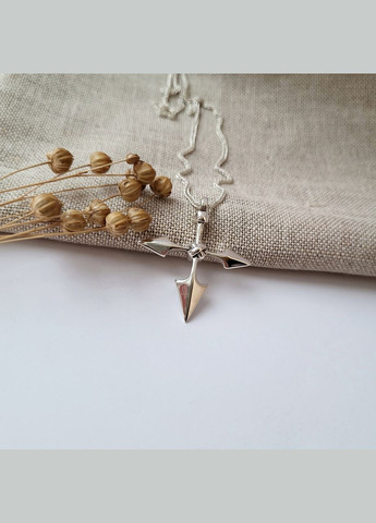 Підвіска Три наконечники Срібло 925 проби Чорнене срібло вага 5.80г Довжина з вушком 36 мм Ширина 35 мм Вушко припаяне Виробництво Україна На всіх ювелірних виробах стоїть проба палати України, що підтверджує матеріал виробу — і законність їх реалізації на території України та іменник виробника, який гарантує відповідність ювелірних виробів вимогам ГСТУ 3527-97 "Виробу ювелірні з дорогоцінних матеріалів