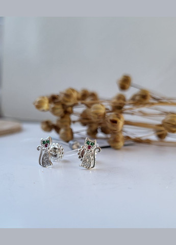 Сережки гвоздики Кішечка Срібло 925 проби Гвоздики на закрутках вага — 1,40 г Вставка камінців циркони Розмір кішечки 10 × 4 мм Виробництво Україна На всіх ювелірних виробах стоїть проба палати України, яка підтверджує матеріал виробу- та законність їх реалізації на території України та іменник виробника, який гарантує відповідність ювелірних виробів вимогам ДСТУ 3527-97 "Вироби ювелірні з дорогоцінних матеріалів