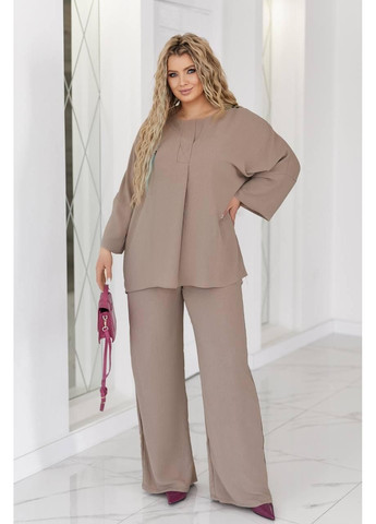 Костюм виконаний з якісної, легкої, практичної, приємної на дотик тканини, яка прослугує вам не один рік. Костюм-двійка: сорочка з однотонну + вставки з принтованої тканини , застібається на ґудзики, на грудях неробочі кишені прикрашені ґудзиками; подовжена сукня вільного крою, короткий рукав. Сезон весна-літо Розміри: 46-48, 50-52, 54-56, 58-60, 62-64 Тканина: американський креп. Кольори: джинс, зелений, бежевий, чорний. Розмірна сітка: Розмір 46-48: Сорочка: ОГ - 108-112 см, ОС - 112 см, ОТ - 108 см, плечі - 51 см, біцепс - 43 см, довжина рукава - 40 см, довжина по спинці - 70 см. Плаття: ОГ - 104-106 см, ОТ -100 см, ОС - 120 см, плечі - 39 см, біцепс - 40 см, довжина рукава - 22 см, довжина по спинці - 120 см. Розмір 50-52: Сорочка: ОГ - 116-120 см, ОС - 120 см, ОТ - 116 см, плечі - 53 см, біцепс - 44 см, довжина рукава - 40 см, довжина по спинці - 70 см. Плаття: ОГ - 112-116 см, ОТ -110 см, ОС - 136 см, плечі - 40 см, біцепс - 41 см, довжина рукава - 22 см, довжина по спинці - 122 см. Розмір 54-56: Сорочка: ОГ - 124-130 см, ОС - 130 см, ОТ - 124 см, плечі - 55 см, біцепс - 47 см, довжина рукава - 40 см, довжина по спинці - 71 см. Плаття: ОГ - 120-124 см, ОТ -124 см, ОС - 152 см, плечі - 43 см, біцепс - 41 см, довжина рукава - 22 см, довжина по спинці - 125 см. Розмір 58-60: Сорочка: ОГ - 130-134 см, ОС - 138 см, ОТ - 132 см, плечі - 56 см, біцепс - 48 см, довжина рукава - 40 см, довжина по спинці - 71 см. Плаття: ОГ - 128-132 см, ОТ -132 см, ОС - 170 см, плечі - 48 см, біцепс - 44 см, довжина рукава - 23 см, довжина по спинці - 125 см. Розмір 62-64: Сорочка: ОГ - 140-144 см, ОС - 144 см, ОТ - 138 см, плечі - 59 см, біцепс - 49 см, довжина рукава - 40 см, довжина по спинці - 73 см. Плаття: ОГ - 136-140 см, ОТ -140 см, ОС - 180 см, плечі - 51 см, біцепс - 46 см, довжина рукава - 23 см, довжина по спинці - 125