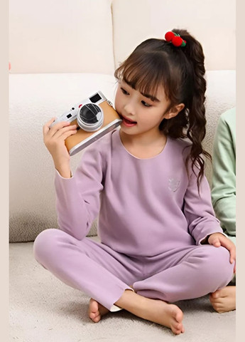 Відсутні крайові шви (по горловині, краю рукавів і низу штанів) Це, а також широкий горловий виріз робить комплект менш помітним під іншим одягом Колір зверху бузковий, зсередини світлий тілесний Склад: 92% - поліестер, 8% - спандекс На зріст 130 см Заміри в ненатянутому стані: Топ: обхват грудей - 75 см, обхват талії - 75 см, ширина плечей - 32 см, довжина рукава - 44 см, висота по спині - 47 см Штани: обхват стегон - 85 см, обхват талії - 50-75 см, довжина - 71 см, посадка спереду - 23 см, посадка ззаду - 25 см Добре тягнеться