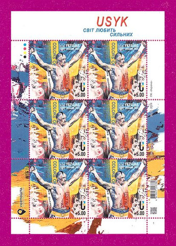 2024 аркуш USYK Світ любить сильних. Рік випуску: 2024 Виставлені на продаж марки України чисті, у відмінному стані, без будь-яких дефектів. Перед відправкою ми надійно упаковуємо марки у щільний картон, щоб унеможливити пошкодження при пересиланні.