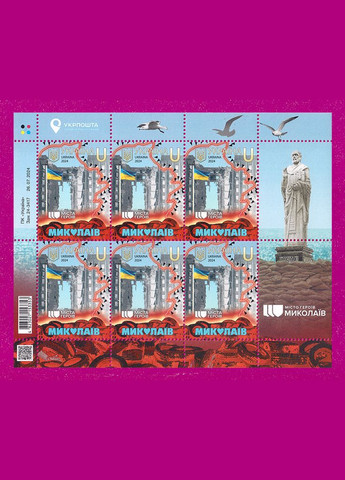 2024 аркуш Міста Героїв. Миколаїв. Рік випуску: 2024 Виставлені на продаж марки України чисті, у відмінному стані, без будь-яких дефектів. Перед відправкою ми надійно упаковуємо марки у щільний картон, щоб унеможливити пошкодження при пересиланні.