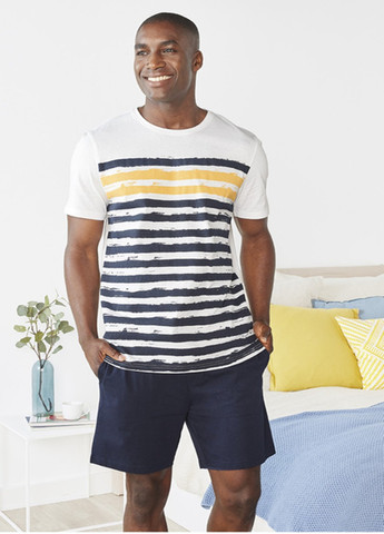 Чоловіча піжама, комплект для дому бренду Livergy. Складається з футболки та шортів. Футболка в смужку, круглий виріз горловини. Шорти однотонні, в поясі гумка із зав'язками, є планка з ґудзиками. Матеріал м'який і приємний до тіла. Заміри: