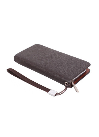 Чоловічий клатч коричневого кольору виготовлений з шкір замінник з м'яким фіксатором для зап'ястя і з'ємним кистьовим ремінцем. Дана модель має три відділення між ними кишеню перегородка на блискавці для дрібниці і 8 слотів для візитниць.