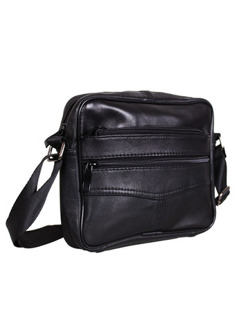 Чоловіча сумка з тонкої натуральної шкіри, надійною фурнітурою чорного кольору. Представлена нами модель має одне містке основне відділення на блискавці всередині якого потайна кишенька, на передній лицьовій стороні дві кишені на блискавці. Сумку можна носити з допомогою знімного наплічного ременя, на задній стороні заставна для поясного ременя.