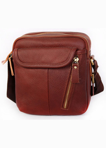 Шкіряна сумка для чоловіків через плече виконана в червоному кольорі. У моделі два основних відділення на блискавці в одному з них потайна кишеня на змійці, на передній лицьовій стороні два кишені один закривається клапаном на магнітній кнопці також на задній стороні кишеня на блискавці.