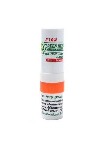 Інгалятор у вигляді олівця з ефірними оліями від тайського бренду Green Herb (Грін Херб) - універсальний і абсолютно натуральний засіб. Інгалятор допоможе при нежиті, закладеності носа, ефективний при запамороченні, нудоті, допомагає побороти дискомфорт від неприємних запахів. Комплекс ефірних мастил активує роботу головного мозку, швидко виводить з обморочного стану, допомагає при тепловому ударі. Використовується для профілактики в період інфекційних захворювань, особливо для часто хворих людей. Показати інгалятор Green Herb при перших ознаках нежитю або застуди; при грипі, бронхіті, ГРЗ, ГРВІ; при синдромах морської хвороби, укачуванні в транспорті; при безсонні і розладах нервової системи; при головних болях. Дія основних компонентів інгалятора Green Herb Ментолова олія отримують шляхом дистиляції з м'яти перцевий. Олія має протизапальні властивості, миттєво знімає закладеність носа, стимулює кровообіг. Олія надає місцеву дратівливу дію, сприяючи регенерації тканин, усуненню набряків і запалень. Має судинні, антиангінальні властивості. Евкаліптова олія чинить антибактеріальну, противірусну, протизапальну, антисептичну дію. Його можна використовувати для освіження дихання та оздоровлення порожнини рота, при запальних захворюваннях верхніх дихальних шляхів і нежиті. Засіб знижує застій зсув у дихальних шляхах, знімає запалення, усуває біль при ковтанні. Камфорна олія допомагає полегшити дихання, знімає закладеність носа, ефективно при пневмонії і вкачуванні. Камфора має потужну антибактеріальну дію. При захворюваннях дихальної системи камфору розм'якшує мокроту і допомагає її якнайшвидшому відділенню. Камфора може допомогти при раптово проявленому нежиті з симптомами загальної застудженості. Борнеол екстрагують з рослин, в основному - з кори камфорних дерев. Борнеол володіє яскраво вираженим бактерицидними, антисептичними і протизапальними властивостями, його застосування дозволяє позбутися кашлю, болю в горлі, закладеності носа. Спосіб застосування інгалятора Green Herb Інгалятор Green Herb має два знімних ковпачки. У нижній частині знаходиться контейнер з ефірними маслами, у верхній - сам інгалятор зі стрижнем, виконаний у формі олівця. Зняти ковпачок інгалятора, вдихнути ефірні пари кілька разів. При головній болі втирати масла в віскі, при нежиті нанести на шкіру під носом, змастити крила носа. При нудоті або запамороченні нанести на віскі та переносицю. Склад Ментол, борнеол, камфорне масло, евкаліптове масло, ментолове масло Протипоказання Індивідуальна непереносимість компонентів інгалятора Умови зберігання Зберігати в сухому і прохолодному місці, далеко від прямих сонячних променів, в недоступному для дітей місці