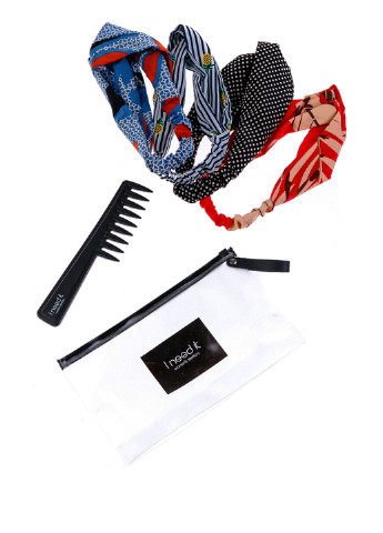 в комплект входить: 4 пов'язки різних кольорів, гребінець, косметичка