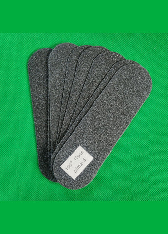 Набір змінних файлів для педикюрної терки 100 Грит. У наборі 10 штук. Значно економлять бюджет майстра. Для роботи з цими файлами можна використовувати металеві, пластикові або дерев'яні основи від різних виробників. Розмір файлу 15,7*4,5 см.