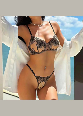 Склад 80% поліестер, 20% еластан / Колір Чорний / Фактура Ажурна / Фасон Стрінги