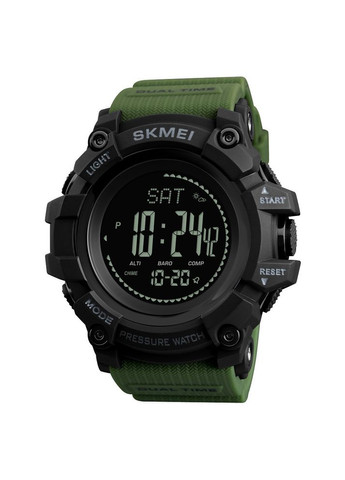 Годинник наручний Skmei 1358 Модель годинника SKMEI 1358 – фітнес браслет і спортивний годинник в одному корпусі. Широкий функціонал допоможе зробити тренування максимально результативним. Завдяки унікальним функціям, що дозволяють заміряти висоту, атмосферний тиск і температуру, такий годинник принесе максимальну користь під час екстремального туризму або далеких походів. А стильний і потужний зовнішній вигляд в черговий раз підкреслять брутальність свого власника. Знання атмосферного тиску та температури допоможе підготуватися до змін у погоді та атмосфері. Модель SKMEI 1358 оснащена електронним компасом. Для увімкнення достатньо вибрати значок у меню за допомогою правої нижньої кнопки. Після цього на екрані буде відображено напрямок півночі. Компас буде дуже корисним як досвідченому мандрівнику, так і просто любителю прогулянок і походів. З їх допомогою Ви можете відстежувати пройдену відстань. Науково доведено, що для підтримки організму в тонусі та зменшення ризику розвитку різних захворювань у середньому необхідно проходити в день близько 10 000 кроків. Лічильник калорій аналізує інформацію про пройдені кроки, дистанції та розраховує спалені калорії. У спортзалі секундомір та таймер вимірять проміжок часу між початком тренування та його кінцем. У побуті вони допоможуть засікти час приготування їжі. bsp;Спортивний; Форма корпусу: Кругла; Механізм: Електронний; Спосіб відображення часу: Цифровий; Водонепроникність: 3 АТМ; , термометр, компас, 3D-шагомер, пам'ять 3D крокоміра, підрахунок калорій, підрахунок пройденої відстані, секундомір, таймер, будильник, LED підсвічування, календар, метроном для підтримки ритму бігу, формат часу 12/24, подвійний час.