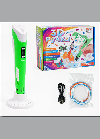 3д ручка – незвичайний пристрій письма, за допомогою якого можна робити реалістичні тривимірні, а також двомірні малюнки. Тільки уявіть, що малювати можна не по аркушу, а від аркуша – нагору! Комплектація: 3D ручка (колір блакитний, рожевий, фіолетовий або жовтий); адаптер живлення від мережі 220В; комплект пластику (3 мотки по 3метри); інструкція; трафарети; підставка під ручку; Характеристики: LCD дисплей безперервна подача пластику можливість регулювати температуру Можливість змінювати швидкість подачі пластику може малювати ABS та PLA Швидка підготовка до роботи