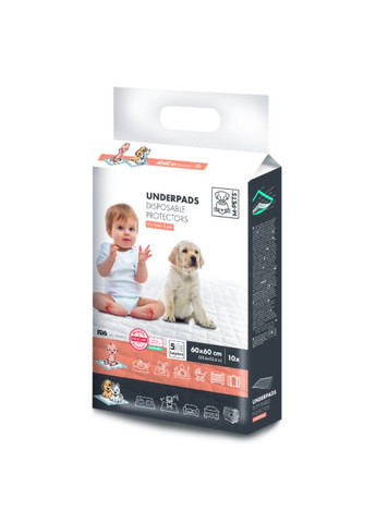 Пелюшки ECO Training Pads розроблені європейським брендом M-Pets з екологічно чистих матеріалів для тварин, які активно привчаються справляти свої потреби у відведеному для цього місці. Такі пелюшки також відмінно підходять дорослим собакам, які мають проблеми з нетриманням сечі, домашнім улюбленцям, які не гуляють на вулиці або собакам, що старіють. Пелюшку зручно брати з собою в подорож, адже вона не займає багато місця, також її можна використовувати як підкладку в контейнері для транспортування тварини. Пелюшки чудово поглинають вологу і є водонепроникними. Виготовлені із якісних, а головне, безпечних матеріалів, які не викликають подразнень чи алергій у вихованців. Завдяки бамбуковим волокнам матеріал пелюшки досить міцний і щільний, щоб собака не могла порвати пелюшку або погризти її. Водонепроникний нижній шар захищає підлогу від сечі, а шар, що абсорбує, вбирає неприємні запахи, залишаючи повітря в будинку завжди чистим і свіжим. 5-шаровий матеріал пелюшки швидко вбирає вологу і не пропускає її, завдяки чому лапки улюбленця залишаються сухими та чистенькими. Пелюшки виготовляються брендом M-Pets за унікальною запатентованою системою, не використовуючи жодних шкідливих речовин у процесі виробництва. Пелюшки мають волокнисту структуру, в якій поєднуються натуральні тканинні волокна та бамбук. Водонепроникний шар виготовлений із переробленого пластику без використання бісфенолу А, який може нашкодити тварині. Пелюшки сертифіковані міжнародними експертами та протестовані дерматологами Німеччини на людському Patch Test. Досліди гарантують якість, екологічність пелюшки та дерматологічну безпеку матеріалу пелюшки. Особливості: унікальна запатентована система; в упаковці; не містить BPA (Бісфенол – А); швидко вбирає та не пропускає вологу; не виділяє запахи; не забруднює лапи; не викликає дерматологічного роздратування у тварин. Характеристики: Розміри пелюшки: 60 х 60 см Кількість: 50 шт. Тренувальні пелюшки M-Pets ECO Training Pads складаються з: Повністю сертифікованих FSC волокон бамбука. Герметичні зносостійкі матеріали із вторинної сировини, сертифіковані GRS. Не використовувалися хімічні атрактанти або добавки, і вони не містять BPA (Бісфенол - А). Пелюшки дерматологічно протестований DERMATEST (Німеччина) на патч-тесті людини для первинної шкіри. Отримана оцінка – «відмінно». Рекомендації щодо привчання цуценят до туалету: Помістіть пелюшку у тримач для пелюшок пластиковою стороною вниз або покладіть на підлогу у відведеному місці. Розташовуйте пелюшки подалі від ліжка та їжі вашого собаки. Кілька разів покладіть або посадіть цуценя на килимок для навчання, щоб він понюхав килимок і звик до нього. Коли ваш собака мочиться на пелюшку, похваліть її і заохочуйте робити це частіше. Як нагорода може використовуватися ласощі. Поступово рухайте килимок ближче до дверей. Потім, коли щеня звикне справляти потребу на килимок, можна буде винести його за межі приміщення.