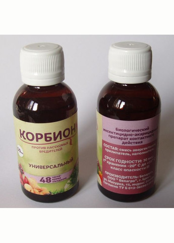 Увага! Вартість товару не включає вартість доставки! Оформляючи замовлення, Ви погоджуєтесь з умовами оплати і доставки. Додаткова інформація - у розділах: та ! АНТИКОЛОРАД МАКС®новинка Високоефективний контактно-системний інсектицид подвійної дії проти широкого спектру шкідників з акарицидними та репелентними властивостями. • підвищена ефективність довготривалої захисної дії; • пролонгована дія та швидкий «нокдаун ефект» проти шкідників; • шкідники гинуть відразу після обробки; • в складі містяться необхідні мікроелементи для забезпечення рослин додатковим живленням та антистресовим захистом; • окрім повного знищення шкідників, позитивно впливає на ріст та розвиток рослин; • відсутня резистентність (стійкість) у шкідників; • безпечний для рослин, споживачів та навколишнього природного середовища. Діюча речовина: імідаклоприд, 300 г/л + лямбда-цигалотрин, 100 г/л + мікроелементи: Препаративна форма: концентрат суспензії. Культура Норма витратипрепарату Спектр дії Спосіб, час обробки Строк очікування від останньої обробки до збору врожаю, діб Картопля 1,0 мл на 3-5 л води на 1 сотку Колорадський жук, попелиці, картопляна міль, совки, трипси, клопи Обприскування під час вегетації за появи шкідників 20 Плодові в т.ч. яблуня, груша 2,0-2,5 мл на 5-8 л води на 1 сотку Бруньковий довгоносик, яблуневий квіткоїд, букарка, казарка, яблуневий пильщик, трипси, попелиці, грушевий клоп, окремі види кліщів Обприскування під час вегетації за появи шкідників 30 Зернові колосові культури 1,0-1,5 мл на 3-5 л води на 1 сотку Клоп шкідлива черепашка, хлібні жуки, трипси, блішки, цикадки, п'явиці, попелиці, мухи та інші 20 Кукурудза 1,0-1,5 мл на 3-5 л води на 1 сотку Стебловий кукурудзяний метелик, західний кукурудзяний жук, мідляки, чорнотілки До відома споживача. Практичний досвід застосування препарату: Томати 1,0 мл на 3-5 л води на 1 сотку Колорадський жук, підгризаючі совки, трип-си, попелиці та інші види шкідників 20 Капуста Білан, капустянки, попелиці, підгризаючі совки, капустяна міль, блішки Бобові 1,0 мл на 3-5 л води на 1 сотку Гороховий зерноїд, плодожерка, довгоносики, попелиці, трипси 14 Буряки цукрові, кормові, столові 1,0 мл на 3-5 л води на 1 сотку Бурякові довгоносики, блішки, щитоноски, попелиці 20 Застосування: Перед проведенням обприскування необхідно розрахункову кількість препарату (див. табл.) розчинити у чистій воді та ретельно перемішати. Робочий розчин використати в день його приготування, оскільки при довготривалому зберіганні втрачаються властивості препарату, що призводить до зниження ефективності дії проти шкідників. Обробку проводити за сприятливих погодних умов (відсутність поривчастого вітру, температура повітря не вище +250С), зазвичай це ранкові (до 10-11) та вечірні (18-22) години. Під час обприскування необхідно досягати рівномірного покриття листків та стебел рослин розчином. Доцільним та економічно вигідним є використання в суміші з фунгіцидом ЗАХИСТ та ЦІЛИТЕЛЬ Норма витрати робочої рідини: молоді дерева 2-3 л/дерево, плодоносні дерева 5 л/дерево. Максимальна кількість обробок за сезон – 2. Інтервал між обробками – при появі нової популяції шкідників. Строк виходу людей на оброблені площі для проведення ручних робіт – 10 днів, механізованих робіт – 4 доби. Упаковка: 2 мл, 10 мл, 100 мл.
